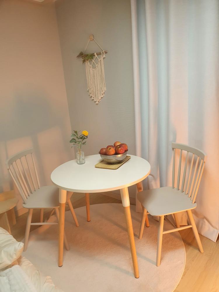 올해 새해 기념으로 제 자신에게 선물했었던 원형 테이블이에요.테이블이 들어왔을 때 참 예쁘고 맘에 들었는데 배치하는 데 애를 먹었어요.