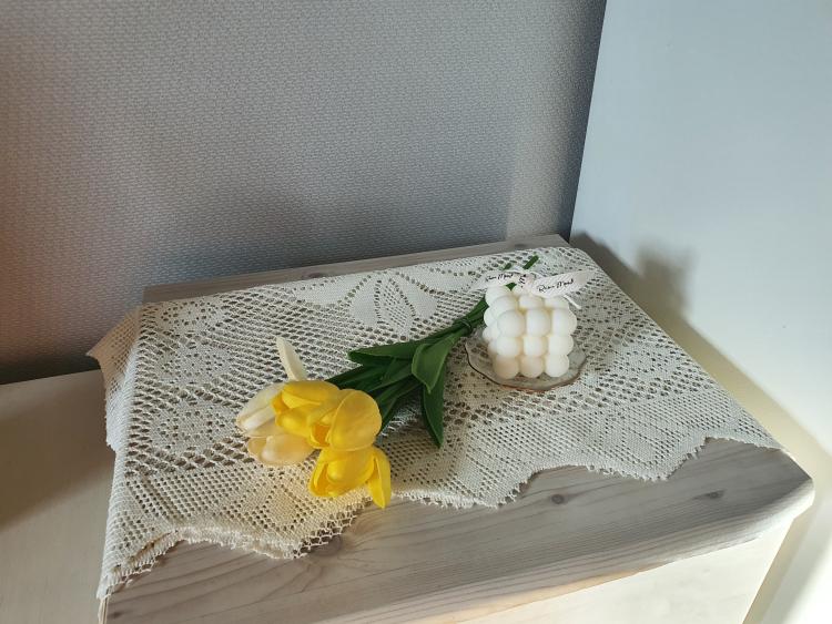 레이스 보를 반으로 접어서 올리니까 훨씬 더 세련돼 보이더라고요! 엄마의 센스는 굿!