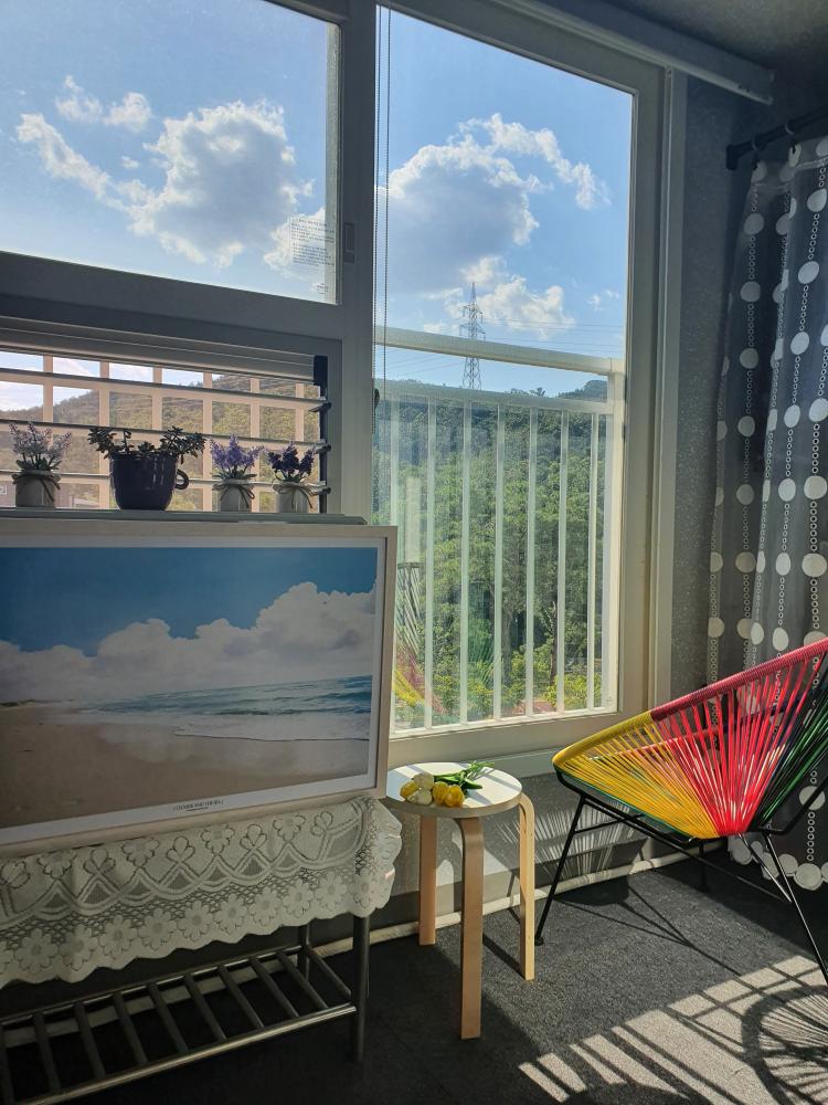 베란다는 커피 한 잔 정도 즐길 수 있는 홈 카페로 만들고 싶었어요. 하지만 좁은 공간의 제약에 막혀 잘 활용을 못하겠더라고요. 에어컨 실외기가 떡하니 자리 차지하고 있으니 더더욱 좁아질 수밖에 없었어요. 그래도 최대한 한정적으로 저만의 스타일로 꾸몄는데 어느 해외의 휴양지 느낌이 물씬 들지 않나요?