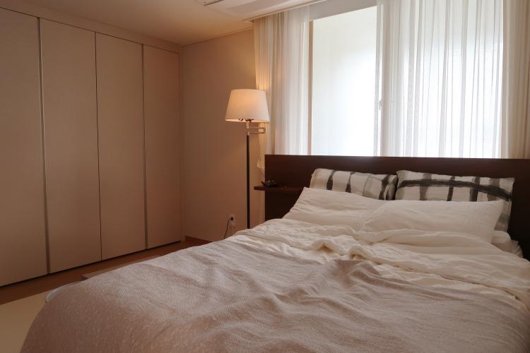 부부의 침실은 군더더기 없는 공간이에요.