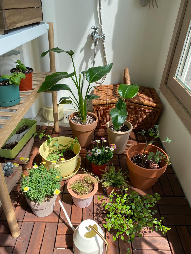 마지막으로, 침실에서 이어지는 작은 베란다에서는 요즘 식물 키우는 즐거움을 만끽하고 있어요. 파테크도 여인초도 그리고 귀여운 마가렛, 데이지도 어쩜 그렇게 다 예쁜지! 자꾸만 더 들이고픈 욕심이 생겨 큰일입니다 : )