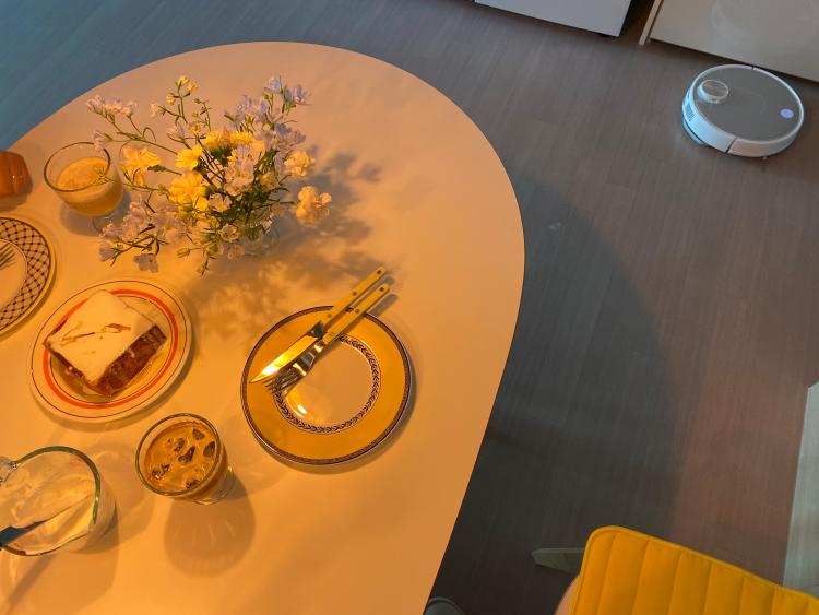 요즘 저의 최애 템입니다. 결혼해 보고 알았어요. 먼지와 머리카락이 그렇게나 많은 줄.. 정말 쉴 새 없이 나오더라고요. 그럴 때 앱을 켜서 시작하기 버튼만 눌러주면 어쩜 그렇게 야무지게 쓸고, 물걸레로 닦고, 집안 청소를 해 주는지요. ‘삐에로 ’애칭까지 붙여진 로봇청소기, 진심으로 추천드립니다.