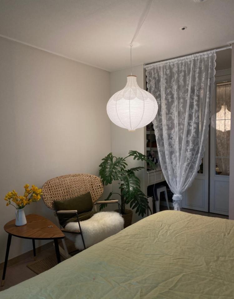 침실을 좀 더 머물고 싶은 공간으로 만들고 싶어 침실에 배치를 바꾸며 지내고 있어요. 침실에서 혼자만의 시간을 보내기도 하고, 빔으로 분위기를 더 해보기도 하며 바뀌는 분위기를 즐기고 있답니다.