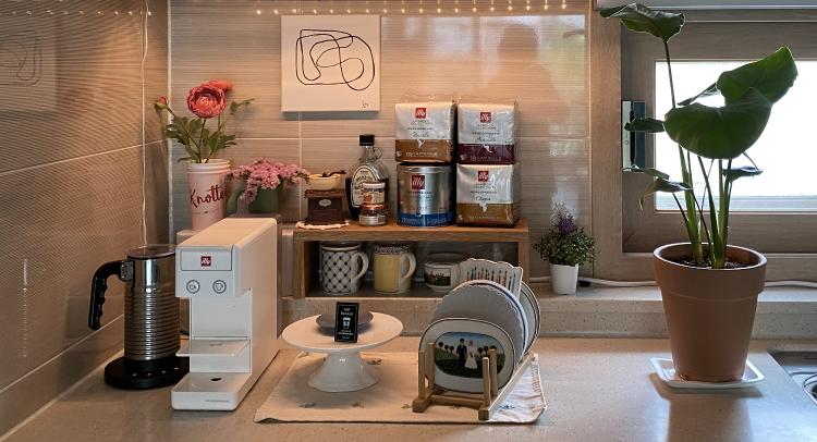 그리고 빠져서는 안되는 집콕 라이프의 필수 공간, 홈 카페! 요기서 예쁜 홈 카페 사진도 찍고, 커피 내리는 사랑스러운 남편의 모습도 볼 수 있어요 : )