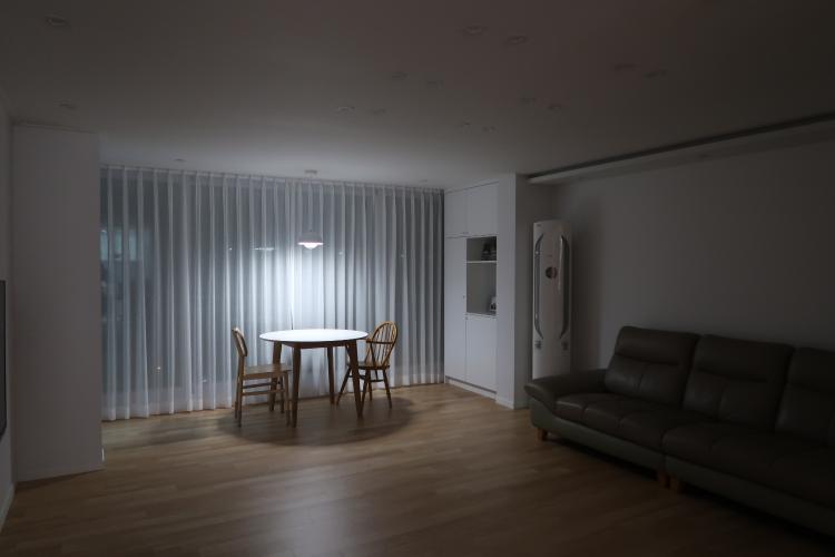 불을 켜면 이렇게 됩니다. 거실의 조명을 정말 많이 고민했어요.