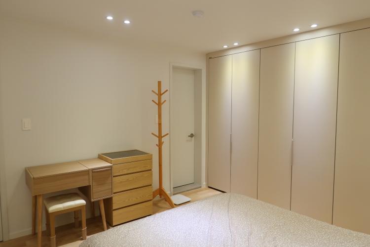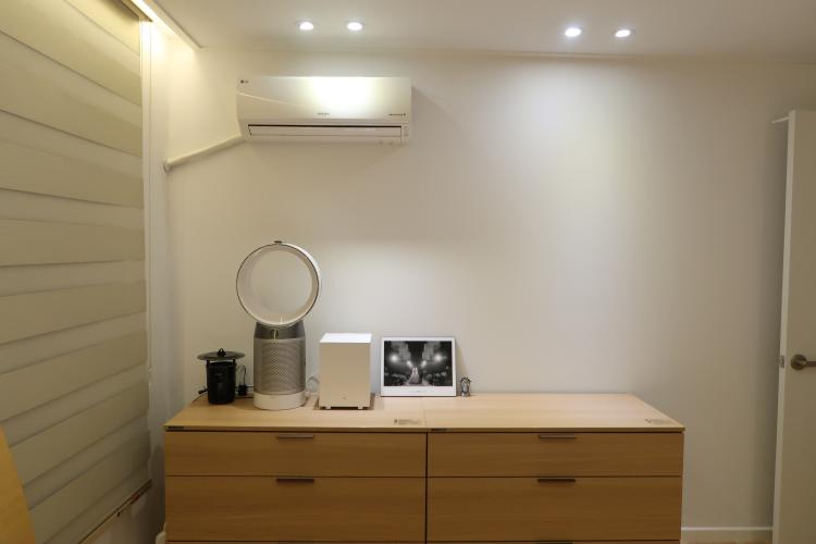 기존의 옷장을 처분하고 수납공간을 위해 추가로 구입한 커다란 서랍장이에요. 붙박이장 앞에 딱 조명이 들어가는 부분이 맘에 들어요.