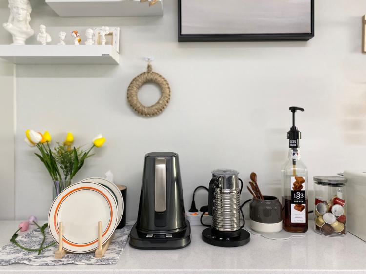 반대편 아일랜드장은 저만의 홈카페로 꾸며놓았어요. 메인 커피기계는 네소프레소 버츄오인데요. 최근 고장이나서 수리를 맡긴 상태에요.