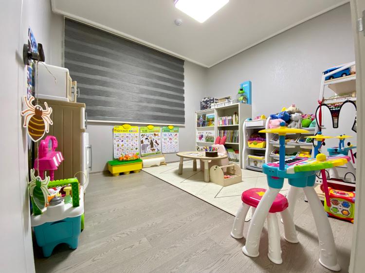 놀이방에서 아이와 많은 시간 보내고 있어요.