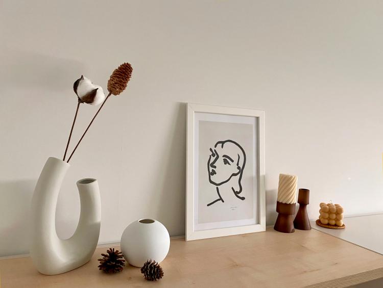 수납장 위에는 이렇게 가을/겨울 느낌이 나는 소품들로 꾸며 두었어요. 이제 곧 봄이 되면 화병에 푸릇푸릇한 식물이나 꽃을 꽂아도 참 예쁠 것 같아요.