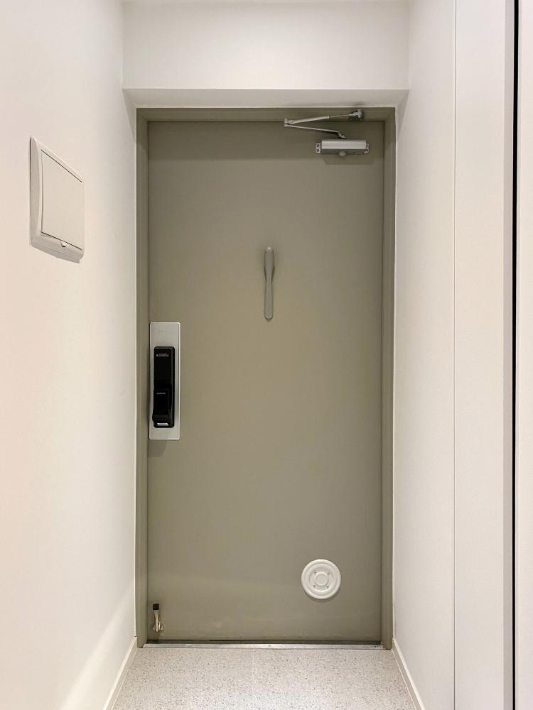 도어록도 설치되고 우유 투입구 커버도 교체한 후에 찍은 사진이에요~ 지저분했던 현관문에 필름 시공을 해서 깔끔해진 것도 있지만 제가 원했던 그레이지 색상으로 바뀌어서 더 따뜻한 느낌을 주는 것 같아요.