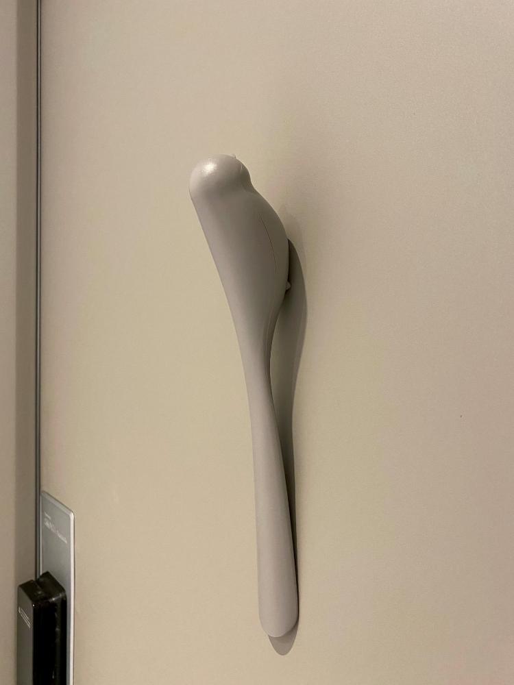 우유 투입구 커버는 너무 아이보리색이라 나중에 현관문 작업 후 남은 필름지를 들고 가서 같은 색상으로 페인트 구매 후 칠할까 생각 중입니다. 가운데에는 새 모양의 칸토 구둣주걱도 붙여 두었는데 너무 찰떡이에요!