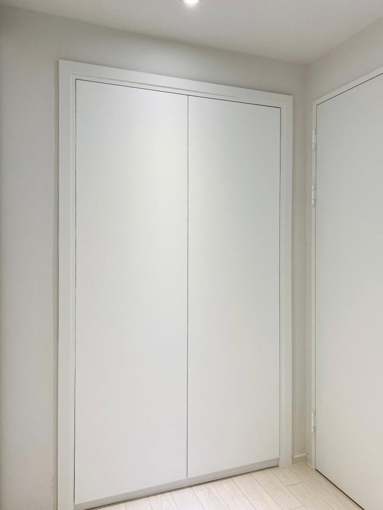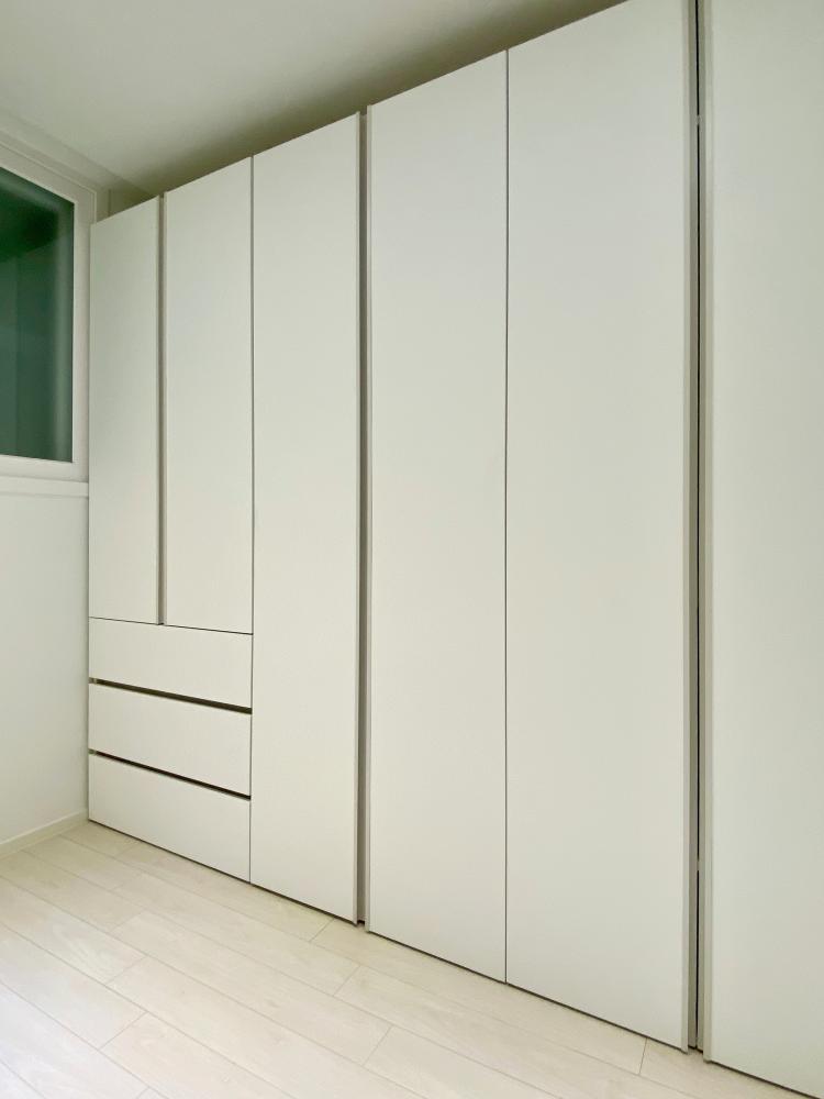 창문 맞은편으로도 벽장이 하나 있는데 공사를 진행하면서 도어랑 내부를 같이 싹 뜯어 화이트 톤으로 고쳤어요.