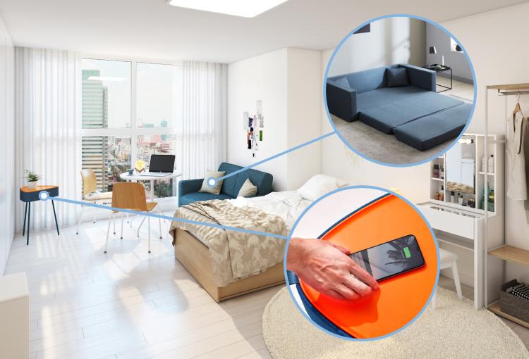 첫 독립 공간을 위한 소파는 접이식 소파를 추천합니다. 펼치면 소파베드로도 활용할 수 있어서 친구들이 놀러 왔을 경우 쨔잔-하고 펼쳐 활용할 수 있다는 거! 그리고 빠질 수 없는 블루투스 스피커, 최근에는 이런 테이블 형태로도 나와 소품들을 올려놓고 사용할 수도 있습니다. 위에 핸드폰을 올려두면 충전까지 지원한다고 하니, 첫 독립 생활을 위한 똑똑한 가성비 가전이라고 할 수 있겠네요.