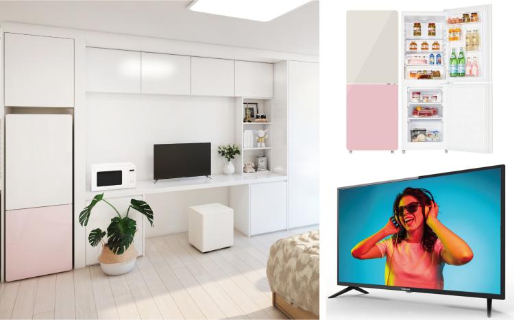 인테리어의 완성은 가전이다! 는 말 아시나요? 원룸에서도 #가전테리어를 시도해보실 수 있어요! 냉장고의 패널에 화사한 핑크와 크림 컬러를 적용해 따뜻하고 감성적인 공간을 연출해줄 수 있는 벨 글라스 냉장고는 효율도 1등급이라 원룸 공간에 딱인 #가전테리어 냉장고입니다. 마지막으로, TV를 고를 때는 좁은 공간에도 부담 없는지 체크해보세요. 하이메이드 HD TV라면, 깔끔한 초슬림 베젤로 가성비 높은 선택이 될 거예요.