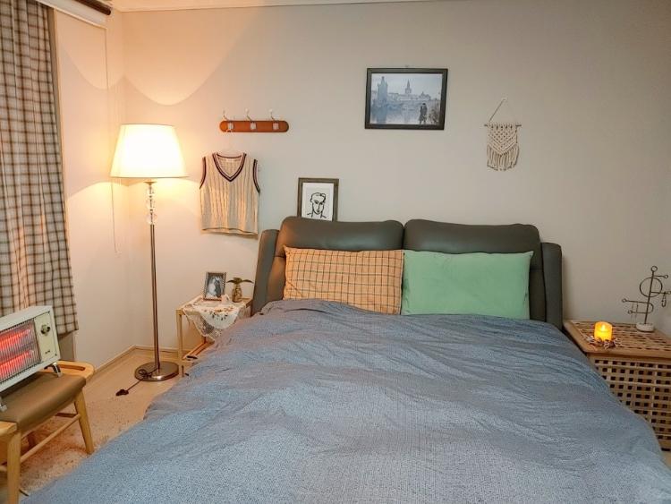 침대 프레임을 구매할 때 침대에 앉아서 책을 읽어야지 생각하고 이 프레임으로 결정했어요. 그레이 칼라가 색을 매치하기 어려웠는데 원목의 아기자기한 소품으로 침대 헤드 벽면을 꾸며보았더니 이전보다 훨씬 마음에 드는 공간이 되었어요.