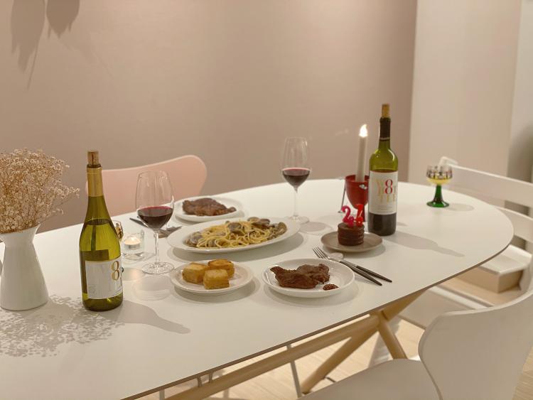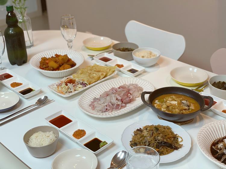 제가 정말 사고 싶었던 6인용 테이블을 구매하며 테이블 세팅도 즐거워졌어요. 한 끼를 먹어도 대충 차려 먹는 것보다 예쁜 그릇에 제대로 된 한 끼를 즐기는 편인데요. 음식이 보기 좋으면 맛도 기분도 좋더라고요. 지금은 손님들을 초대할 수 없어 주로 우리 가족끼리 많이 먹지만 코로나가 좀 괜찮아지면 손님들 초대해서 홈 파티도 하고 싶어요!