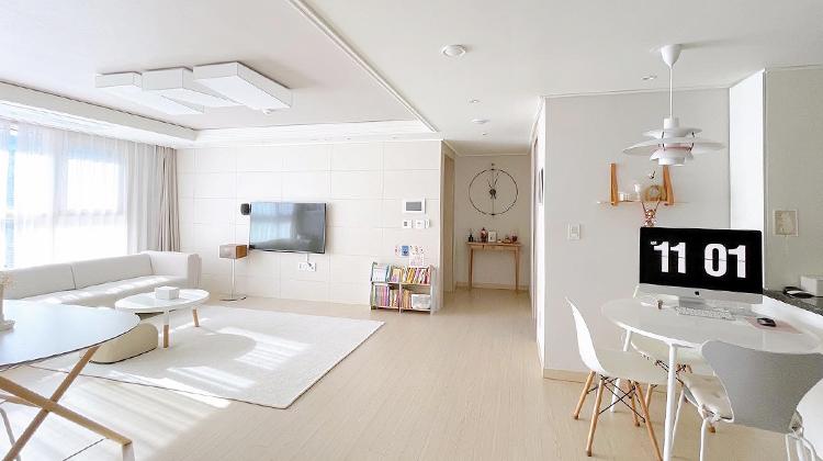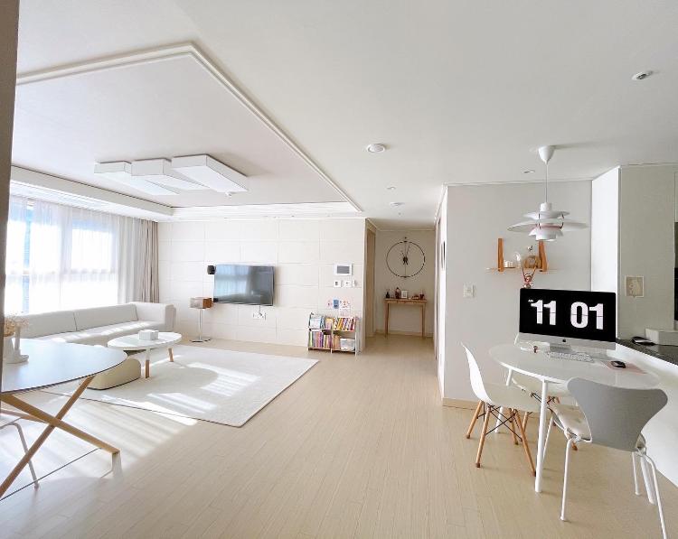 안녕하세요. 저는 결혼한 지 5년 차 되는 주부입니다. 저희 집은 이제 막 세 돌이 된 4살 아들과 함께 사는 집이에요. 이 집은 저희 가족의 두 번째 집인데요. 첫 번째 집도 신축 아파트여서 따로 인테리어 공사를 하지 않았는데 살다 보니 조금 아쉬운 점이 있더라고요. 그래서 다음번에 이사를 가면 꼭 인테리어를 해서 이사를 가고 싶었는데 두 번째 집도 신축 아파트를 가게 되었고 현실 문제와 타협을 하다 보니 기본적인 조명공사만 한 채 이사를 하게 되었어요.
