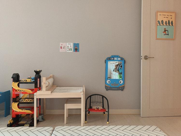 이 방엔 감성을 포기하고 아이의 눈 맞춤에 맞는 알록달록한 제품들이 함께 합니다. 거실과 바로 옆으로 붙어있는 방이기도 하고 자기 공간이란 걸 인식해서 그런지 아이도 이쪽 공간에서 노는 걸 좋아하더라고요.