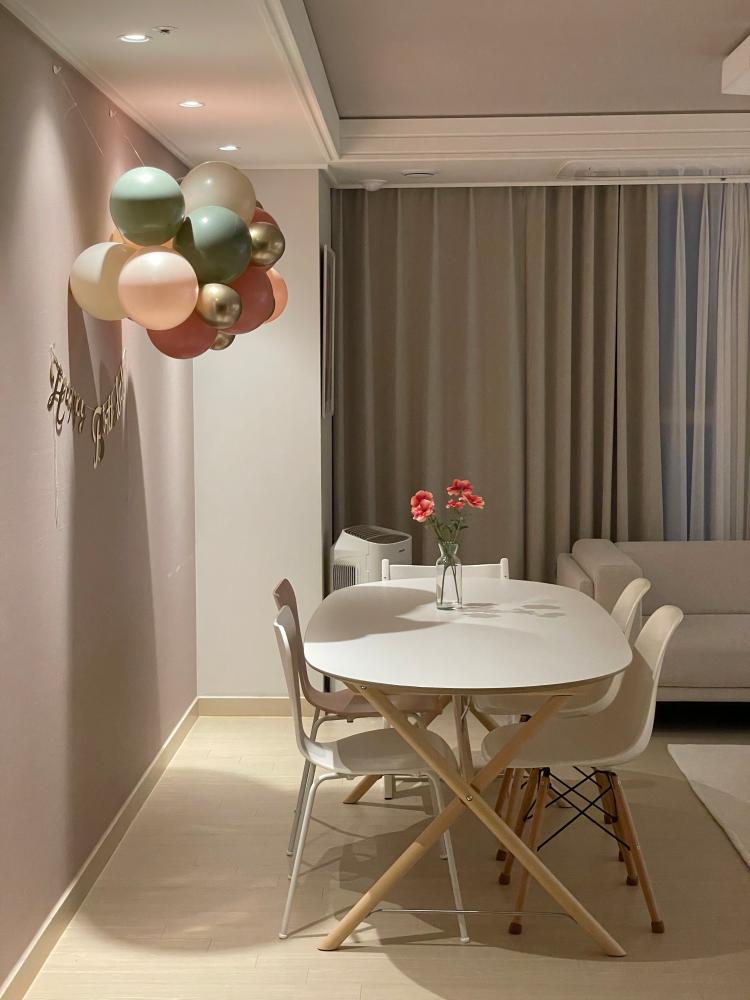 풍선을 이어붙여 만든 풍선 가랜드는 별거 아니었지만 소소한 행복감을 주더라고요.