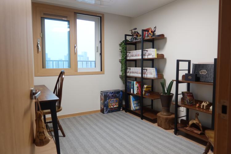 남편이 좋아하는 컬러감으로 꾸민 공간이에요. 서재만큼은 다크한 분위기를 원했어서 그런 가구들로 배치를 해보았습니다.
