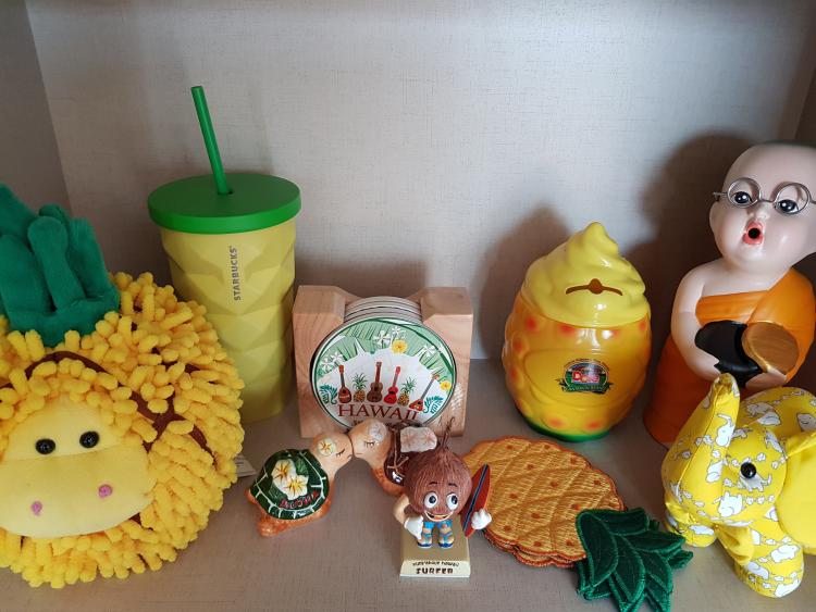 신혼여행을 하와이로 다녀와서 사온 소품을 전시해 놓거나 사용하고 있어요. 현관에는 여행에서 샀던 마그네틱을 붙여서 오고 갈 때 마다 볼 수 있게 하였구요 복도에는 신혼사진과 부케액자를 놓아서 신혼공간을 유지하고 있답니다.