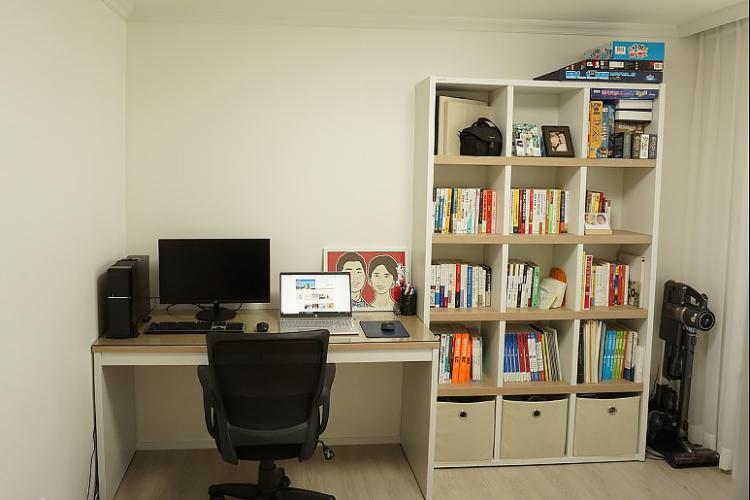 여기는 원래는 솔이방으로 사용하려고 했는데... 저의 재택근무가 늘어나고 책상을 둘 곳이 마땅치 않아서 어쩌다보니 그냥 저의 서재가 된 곳입니다.