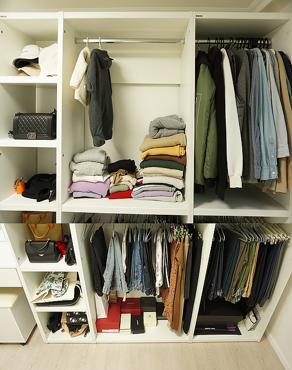 저희는 옷 종류는 한 방에 다 몰아놨어요! 요즘 신축 아파트는 안방에 드레스룸이 딸려있는데, 저희는 구축 아파트라서... 또르르 ㅠㅠ