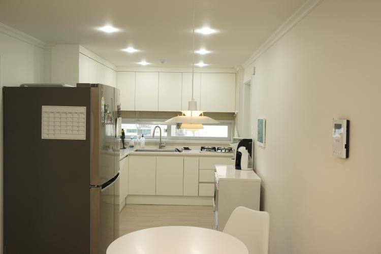 주방도 역시 동일한 컨셉으로 화이트&심플로 꾸며봤습니다.