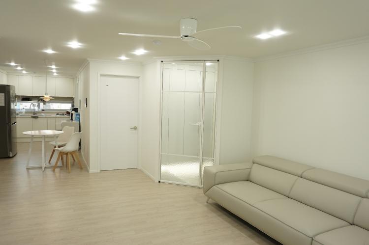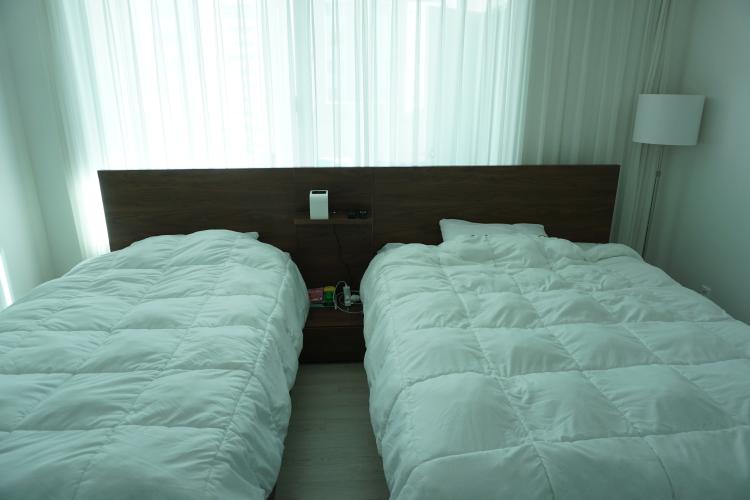 침실은 최대한 심플하게 구성하였습니다. 침대는 퀸사이즈와 슈퍼싱글 사이즈 각각 하나씩 설치하여 최대한 꿀잠을 잘 수 있도록 하였고요.