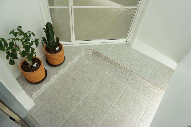 사선 중문과 테라조 타일로 꾸민 유니크한 현관