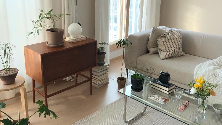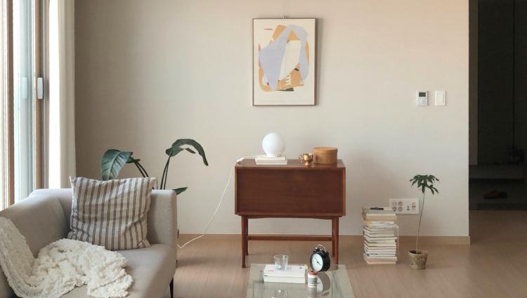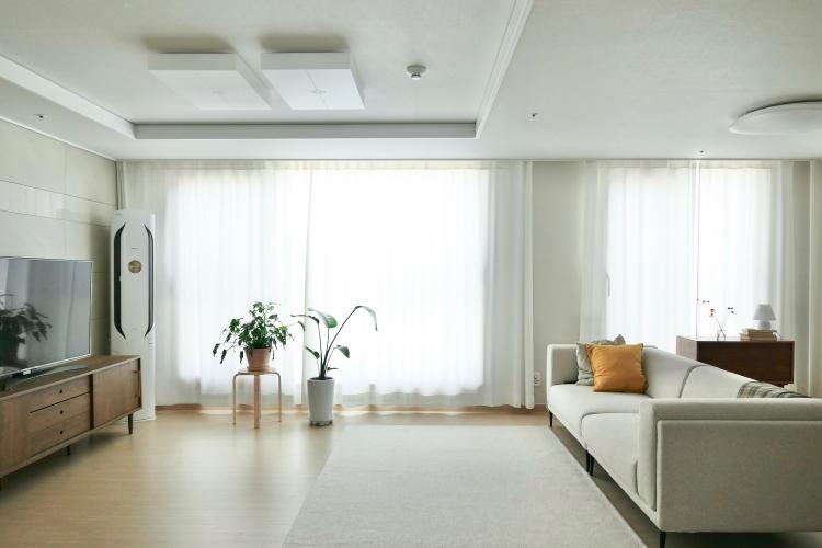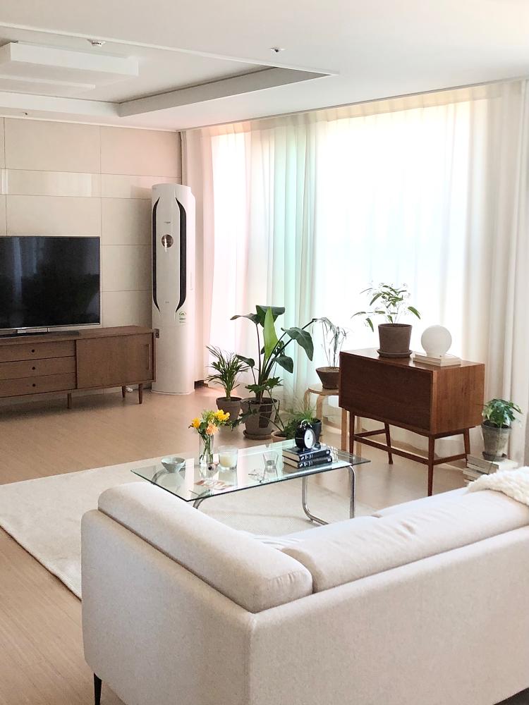 베이지&화이트 톤에 원목 가구 포인트인 거실
