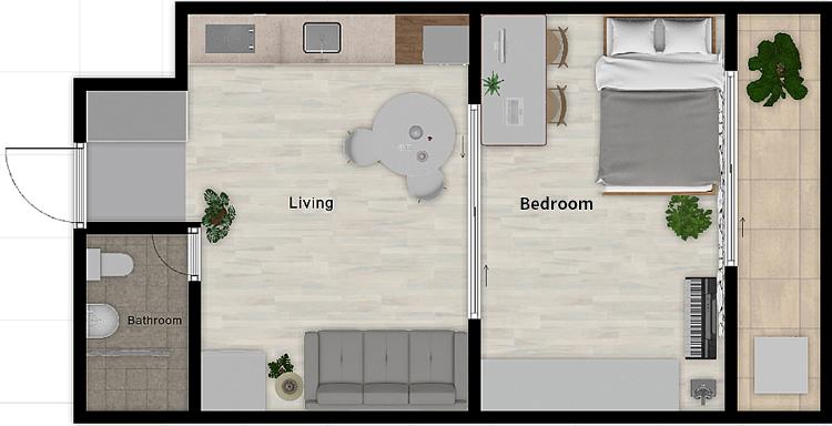 floorplanner 사이트를 이용하면, 실측 사이즈를 바탕으로 가구를 미리 배치해 볼 수 있어서 큰 도움이 되었어요. 곳곳에 배치된 초록이들이 제 플랜테리어 로망을 보여주네요. 삭막한 집에 초록이들 있으면 카페같고 기분이 좋거든요~