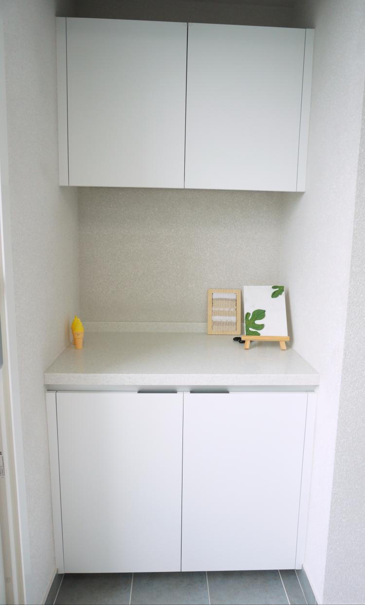 기존 붙박이장이 상하부장이었어요. 이곳을 전체 팬트리 장으로 할까 하다가.. 그냥 기존 디자인 그대로 상하부장으로 설치했습니다. 중간의 인조대리석 상판이 있어서 이곳을 인테리어 소품으로 예쁘게 꾸밀 계획입니다.
