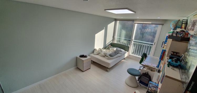 위 사진은 큰 애 방이에요. 초등학교 고학년으로 레고를 좋아한답니다 :) 베란다 확장된 방이라서 채광이 좋은 방입니다. 창호는 기존 창호 그대로 사용하면서 인테리어필름만 시공했습니다.