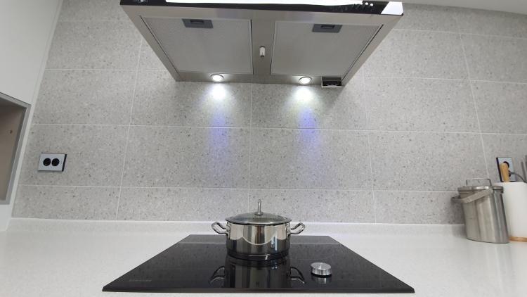 저는 이렇게 타일 디자인을 통일했습니다. 타일 디자인 고르기 전에 타일 가게 사장님께 물어봤어요. '주방 & 욕실의 타일을 통일한 사람 본 적 있어요?' '아뇨 없어요. 보통 그렇게 안 하죠' 어떡하지.. 이상한가... 고민 많이 했는데요. 저는 시공하고 나서 만족하면서 잘 살고 있어요 ^^ 이따 아래에서 주방 타일 시공 모습 확인해 보세요.