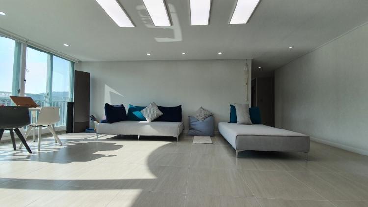 LED조명으로 바꾸고 나서는 확실히 전기세가 덜 나오더라고요. 만족합니다. 소파는 기분에 따라 배치 구조를 바꾸고 있어요. 처음에는 일자형으로 놨다가 지금은 ㄱ자로 놨다가 또 다시 새로운 구조로 배치할 것 같아요^^ 소파 뒷 벽면을 더 예쁘게 꾸미고 싶어서 이 공간도 고민 중에 있습니다.