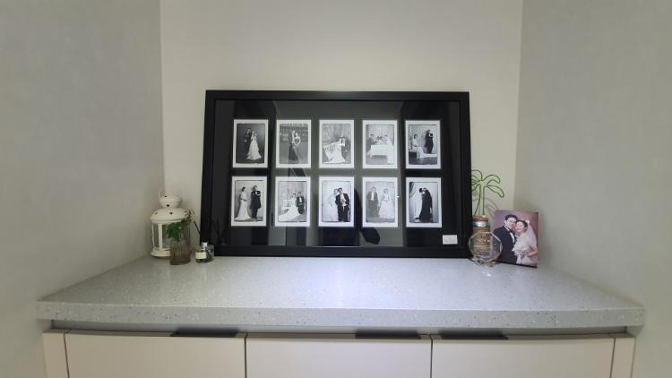 제가 결혼 13년 차인데 사실 그동안 12년 동안 저 대형 액자를 베란다 창고에 넣어놨었습니다. 첫 집은 21평이라 좁아서 그런 이유도 있었고요. 그 이후 아이 생기고 나서 아이들 물건으로 가득하다 보니 이래저래 순위에서 밀려났었죠.