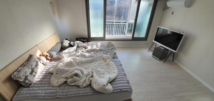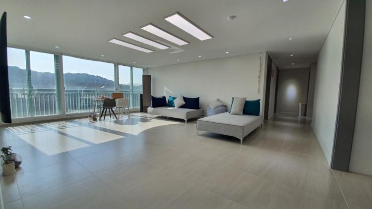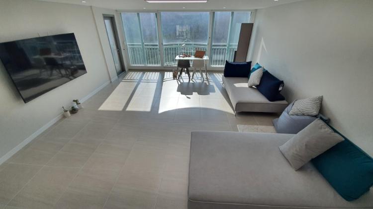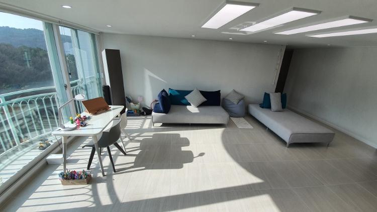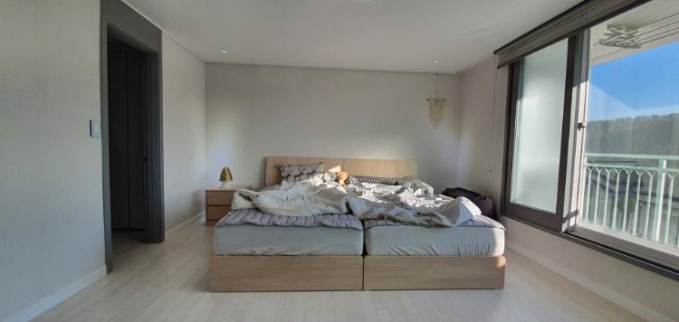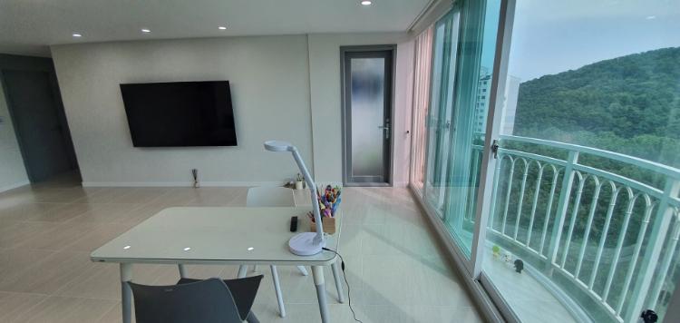 산이 보이는 전면 창. 베란다 확장 된 거실 공간이라서 산이 바로 보입니다. 액자뷰 제가 사랑합니다.