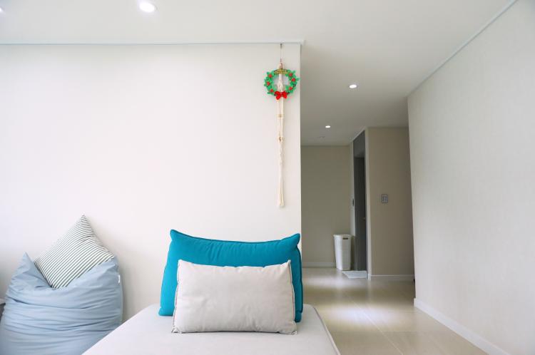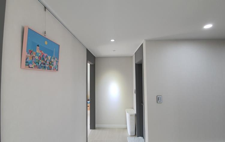 혹시나 해서 현관 맞은편 천장 쪽에 액자 걸이도 시공해 놓은 상태에요. 현관문 열고 들어오자마자 보이는 부분이라 예쁘게 꾸며보고 싶어요.