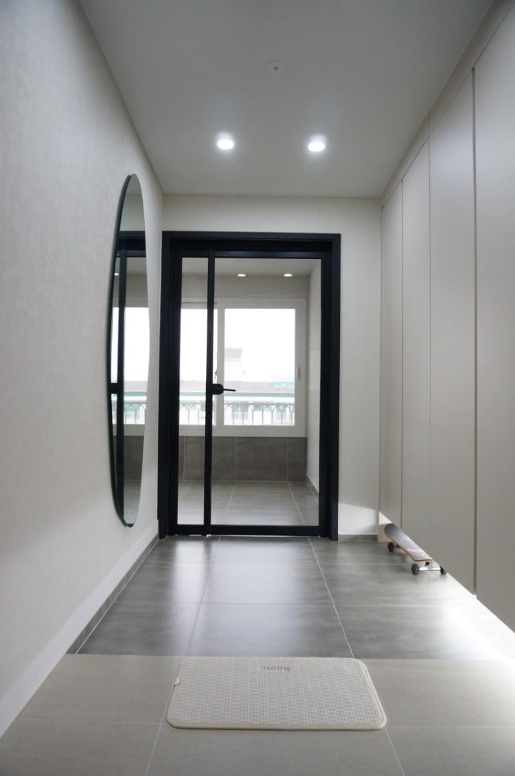 저는 미니멀 인테리어를 좋아해요. 집에 있는 짐을 최대한 정리하고 이사 왔습니다. 사실 현관 전실은 아직 미완성입니다. 현관 맞은편의 벽면을 꾸밀 생각인데 아직 아이디어를 찾지 못했어요.