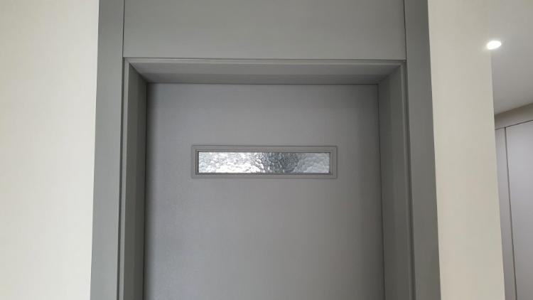거실 화장실 욕실 보여드릴게요. 화장실 문은 방 문과 다른 디자인으로 선택했습니다. 민무늬와 다르게 상단에 미니 유리가 있는 디자인이라서. 안에서 불 켜면 사람 있는지 더 쉽게 알 수 있어요. 또 디자인이 있어서 밋밋하지 않고 마음에 쏙 듭니다.