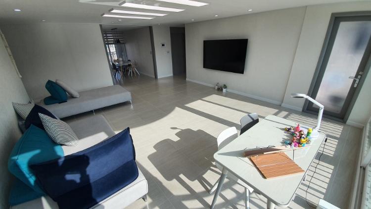 이사 오기 전에는 마루 공간에서만 생활했었어요. 포세린타일을 깔고 생활해 본 적이 없어서 시공 전에 고민도 많았죠. 지금까지 봄, 여름, 가을 3시즌 살아봤는데요. 아직까지는 만족합니다. 겨울을 한 번 더 지나봐야 4계절 다 살아보는 거겠지만 지금까지는 만족하면서 지내고 있어요. 채광이 좋아서 블라인드도 필수로 달았답니다. TV 볼 때 블라인드 내리면 유용하죠 ^^