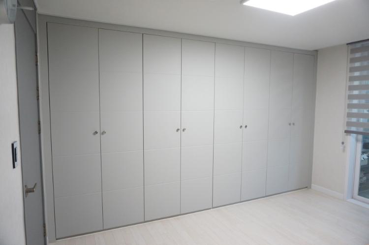 기존 붙박이장에 인테리어필름만 붙여서 시공했습니다. 이곳에 주로 이불과 남편의 옷을 보관합니다.