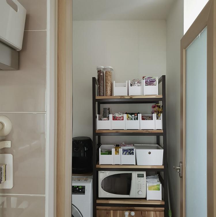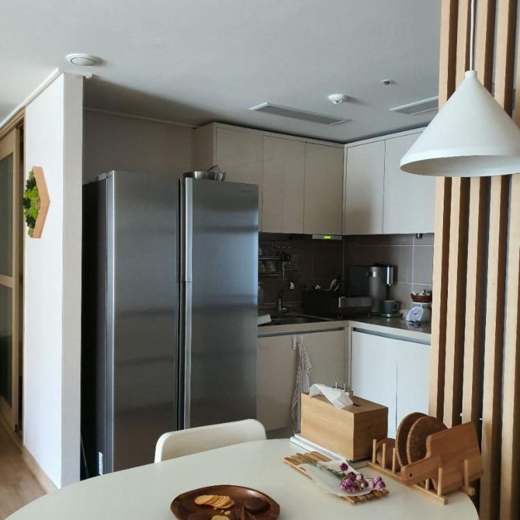 기본 메인 냉장고 자리는 있지만, 김치냉장고 자리는 없는😰 아파트 구조상, 김치냉장고를 들이니 냉장고 측면이 보이는 게 너무 싫었어요ㅜㅜㅜ