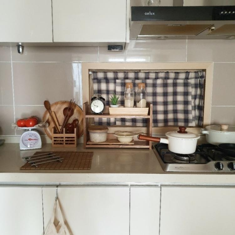 저희 집 사진에서 핵심 공간인, 주방 홈 카페 공간입니다. 이곳의 분위기를 살려준 가장 큰 아이템은 아마 ‘원목 파티션’을 칭찬해 주고 싶습니다. 김치냉장고를 구매하고 냉장고 측면 가림 용도로 구매한 원목 파티션은, 저의 주방을 아예 다른 주방공간으로 만들어 주었습니다.