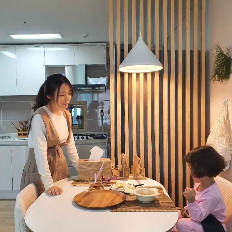 원목 파티션 설치, 식탁 등 교체, 소품 활용, 정리 정돈 만으로도 나만의 홈 카페가 만들어질 수 있답니다.