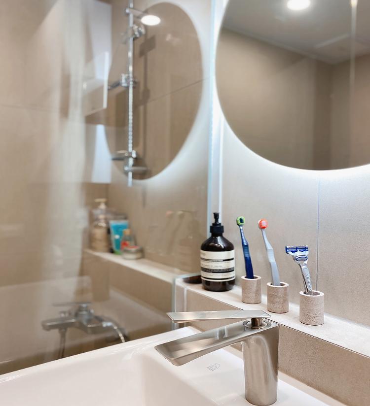 호텔처럼 깔끔한 욕실을 만들고 싶어 턴키 사장님과 충분한 상담 후 실력자 타일러 두 분의 마법 같은 시공 끝에 탄생한 욕실이에요.