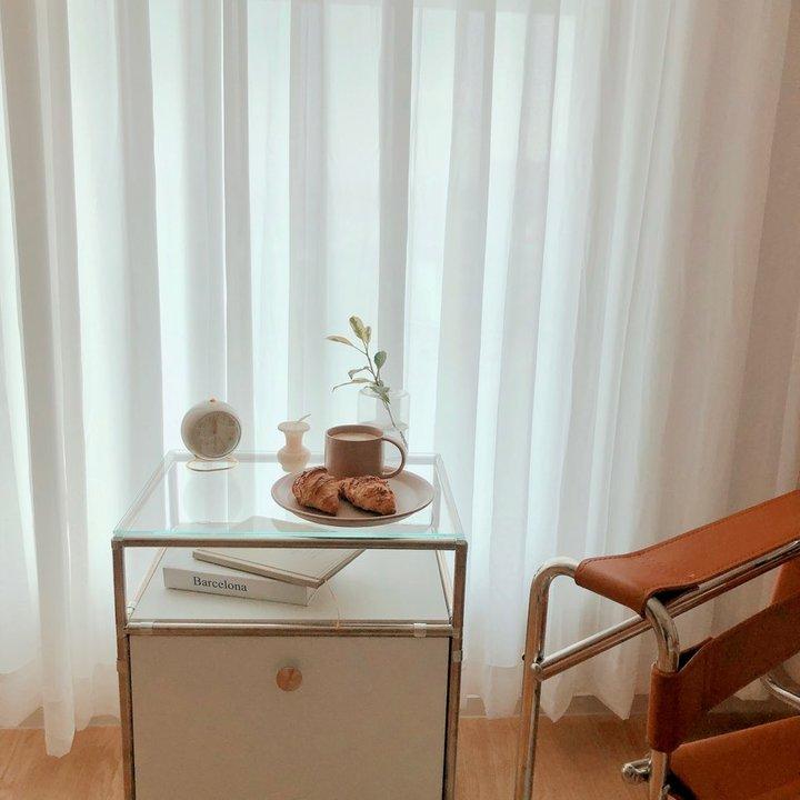 커피머신과 미니오븐 등 어딘가에는 꼭 나와 있어야 할 제품들이 제자리를 찾은 것 같죠? 예쁜 커튼도 하나 달아줄까 봐요:)