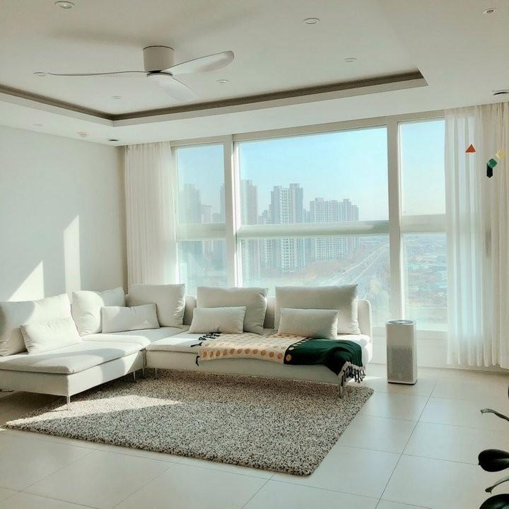 매장에 가서 보자마자 디자인에 반했고, 앉아보고 깊이감과 푹신함에 또 반했어요. 마지막까지 색상으로 고민했는데 최종 결정한 색상은 피운 스타 화이트 색상이에요. 새 하얀색은 아니고 연한 그레이에 가까운 화이트라 넓고 밝은 집을 만드는데 중요한 역할을 하고 있지요 :)