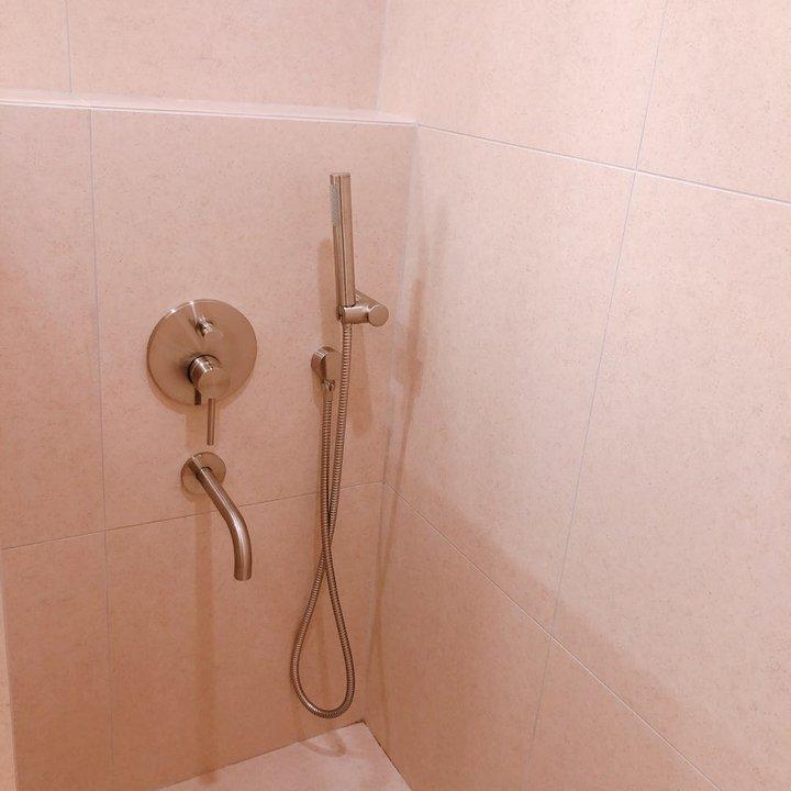 전반적으로 '선이 복잡해지는 공간을 피하자'는 주의라 화장실은 거실과 안방 모두 벽에 매립하는 벽 매립 수전을 시공했습니다. 모두 무광 제품으로 하고 싶어서 인터넷과 을지로를 샅샅이 뒤져서(;) 저렴하고 깔끔한 제품들을 구매했어요. (인터넷 최저가보다 을지로 매장들이 더 저렴하더라구요!)